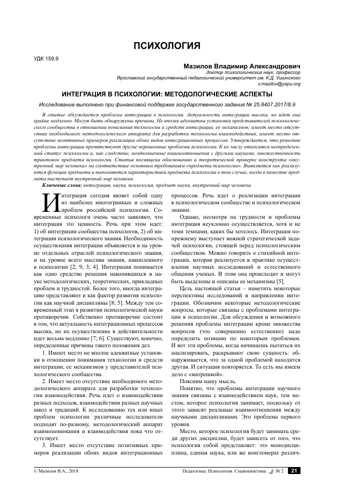 Интеграция психологии и философии